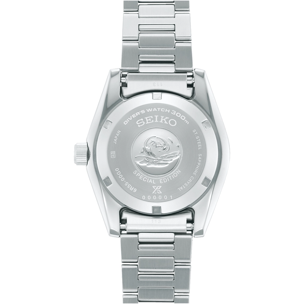 Материал корпуса и браслета – нержавеющая сталь 316L. Корпус имеет полировку Zaratsu. На стрелки и метки нанесена подсветка LumiBrite – собственный запатентованный состав Seiko. Через 10 минут поглощает свет, достаточный для свечения стрелок на 3-5 часов. Циферблат защищает сапфировое стекло с антибликовым покрытием. Есть индикатор даты. Задняя крышка и заводная головка завинчиваются.