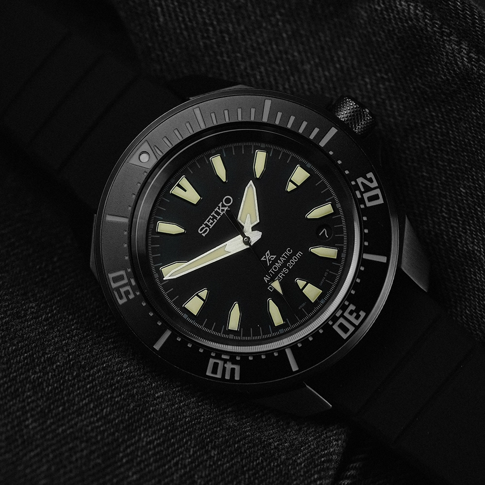 Стекло хардлекс – запатентованное Seiko. На метки и стрелки нанесено люминесцентное покрытие LumiBrite. Есть вращающаяся в одном направлении безель с алюминиевой вставкой.